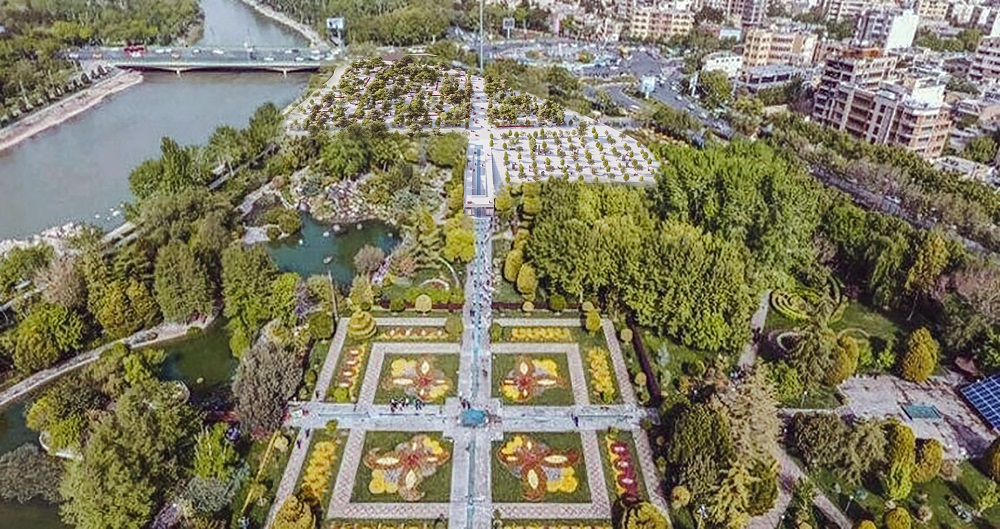 We extended the main axis starting from the center of the "Garden of flowers" to Bozorgmehr Sq. and the second axis perpendicular to the first one, from the Moshtagh Av. to the edge of Zayandehrood. The main axis is the starting point for the 6x6 grid which organizes all the 20-0 cm (diameter) trees and twenty percent of the 50-20 cm (diameter) trees. Another 6x6 grid generates by moving the main grid 3 meters in 2 directions and organizes the lights on the ground.