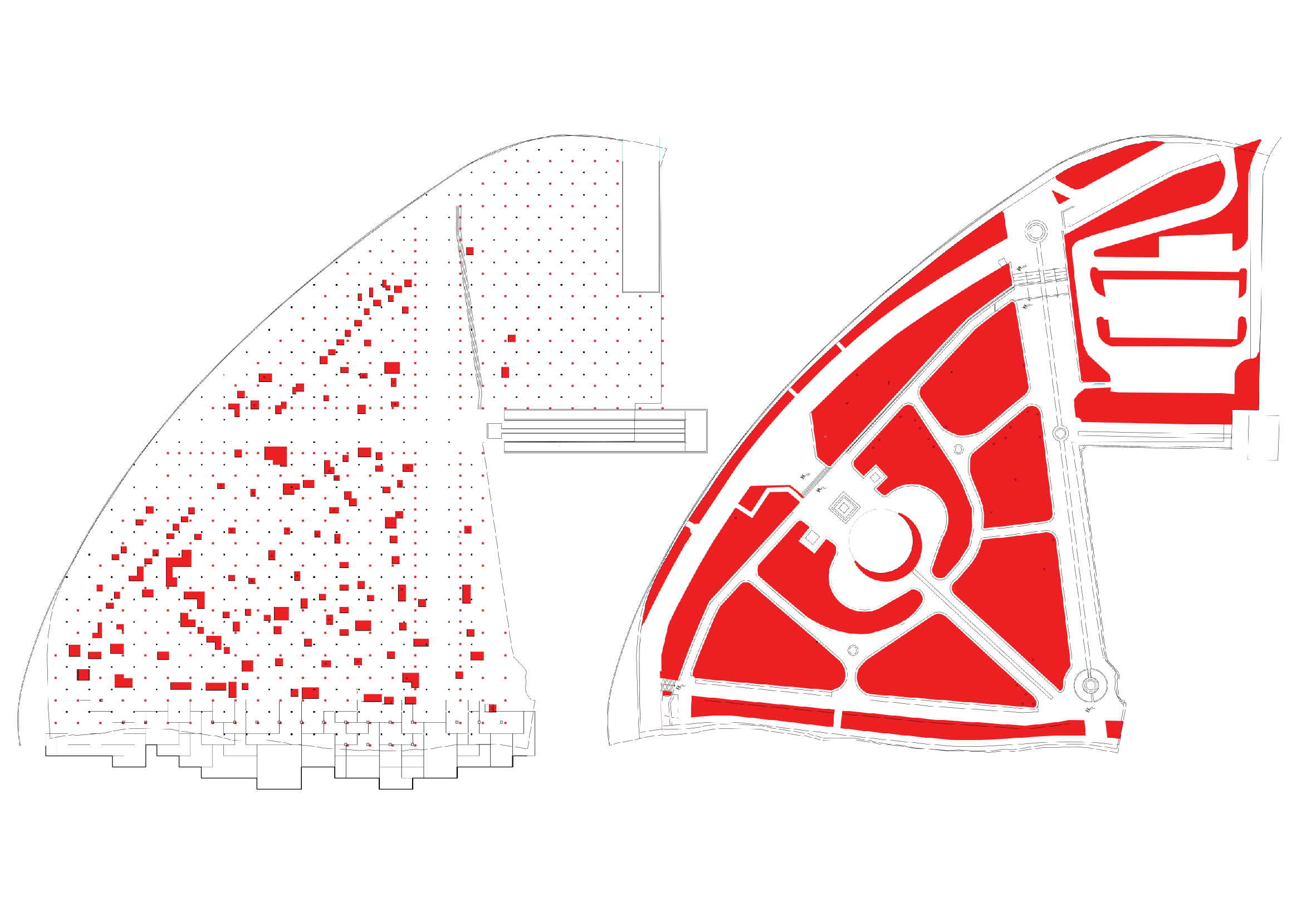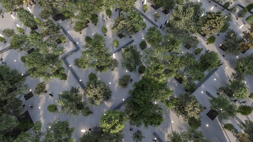 The project is a surface with small gardens on the nodes of the main grid and random gardens of the trees that we couldn't move. Therefore the project is a patch in the scale of the whole site that carving out the gardens in it creates trajectory.