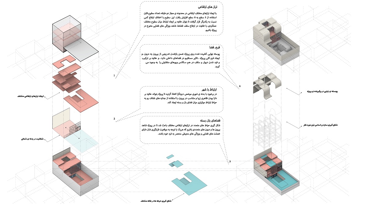 The building replaces traditional three-level layouts with multiple elevation planes within permitted limits. By creating independent open spaces at various levels, the design enables diverse environmental experiences throughout different times and uses.